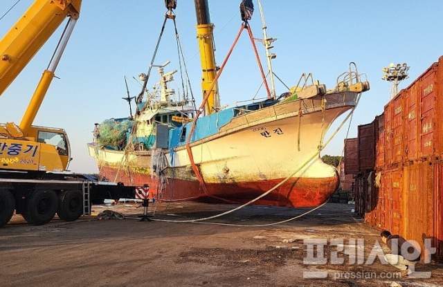 만진호는 이후 안전그물망이 설치된 채 예인선에 의해 21일 오후 9시께 서귀포항으로 들어왔다.