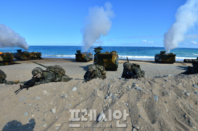 이어 이날 훈련에서는 상륙돌격 장갑차, 헬기, 상륙함 등 합동자산을 활용해 해안으로 돌격하며 목표지역을 확보했다.