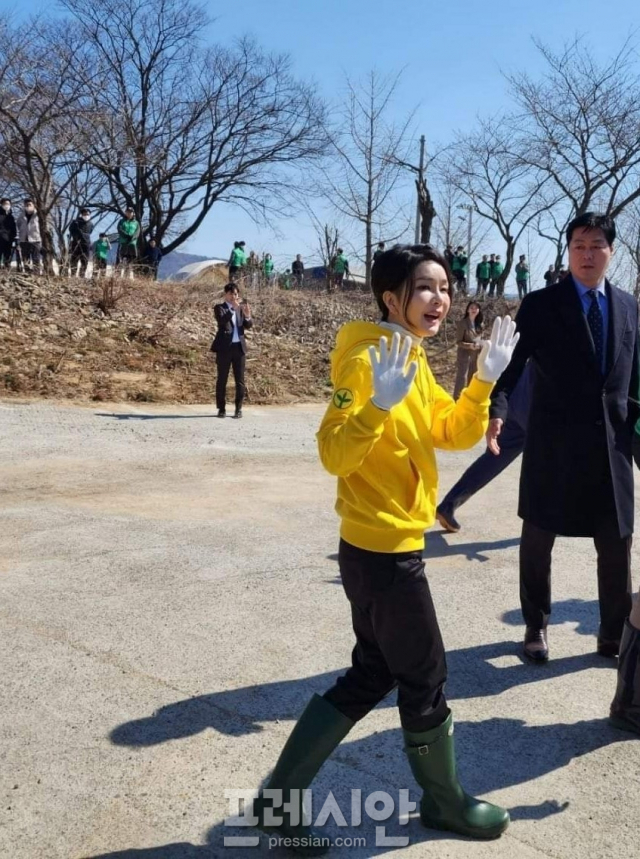 김 여사는 이날 오전 포항시 북구 기계면 문성리에서 포항시새마을회 회원들과 대학생 동아리 회원 등 300여 명과 함께 ‘새마을운동발상지 인근 하천 정화활동’을 펼쳤다.