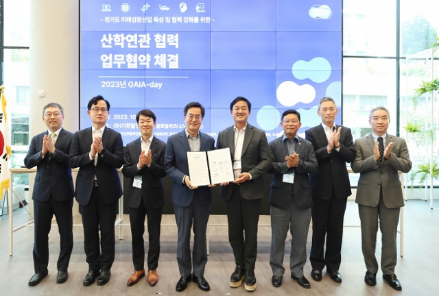 이날 행사에서 도는 (사)경기도산학협력단협의회, 중소기업중앙회 경기지역본부, 한국반도체산업협회, 한국바이오협회, 한국자동차연구원, 경기도경제과학진흥원, 차세대융합기술연구원과 '미래성장산업 발전과 육성 지원을 위한 협약'을 체결했다.