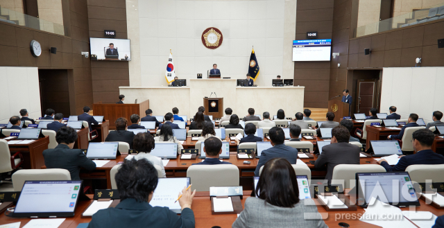 이날 제1차 본회의에 앞서 윤원균 시의장은 개회사를 통해 "10월은 의회와 집행부가 내년도 사업과 예산을 준비하는 아주 중요한 시기"라며 "정부가 국회에 제출한 2024년 예산안은 건전재정 기조에 따라 보조금 삭감, 교부세 감액 등 강도 높은 구조조정을 담고 있다"고 말했다.