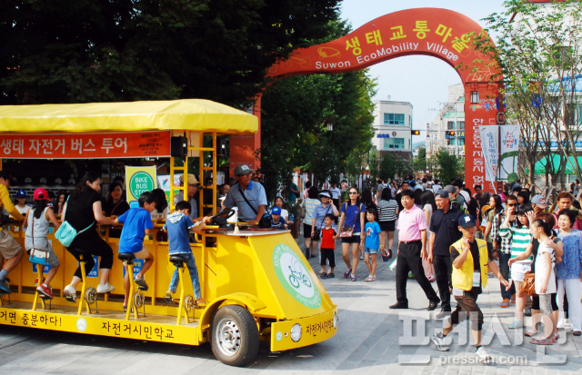 행사의 백미로 21일 낮 12시30분부터 진행되는 ‘생태교통 퍼레이드’는 자동차가 사라진 장안문~행궁광장 구간의 거리를 사람과 생태교통 수단들이 채운다.
