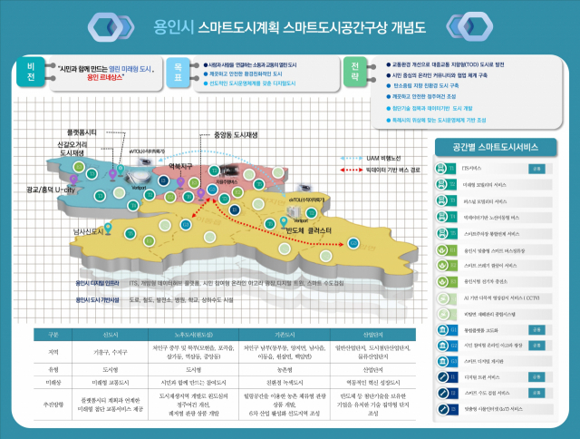 용인특례시가 도시 경쟁력 강화를 위해 인공지능(AI)과 사물인터넷(IoT) 등 스마트 기술을 적극 활용한 스마트서비스 구축을 위해 추진하는 중장기 로드맵이 담긴 ‘용인시 스마트도시계획’이 국토교통부의 최종 승인을 받았다.