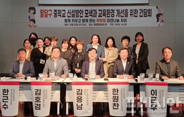 김 전 의원은 25일 경기도교육청과 수원교육지원청을 비롯해 김호겸·한원찬 경기도의원 및 수원특례시 팔달구 학부모들과 함께 팔달문화센터에서 ‘팔달구 중학교 신설 방안 모색과 교육환경 개선을 위한 간담회’를 개최했다.