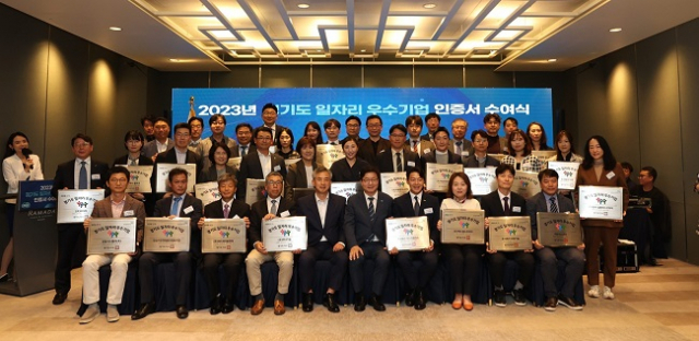 26일 도에 따르면 도는 이날 라마다플라자 수원호텔 오키드홀에서 염태영 도 경제부지사, 손일권 경기도일자리재단 서부사업본부장, 일자리 우수기업 인증기업 대표 등 관계자 80여 명이 참석한 가운데 '2023년 경기도 일자리 우수기업 인증서 수여식'을 개최했다.