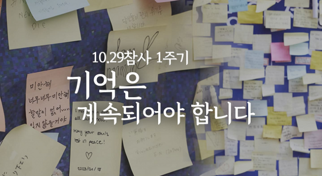 도는 10.29 참사 1주기를 맞아 이용자 편의를 위해 온라인 기억공간의 디자인을 개편했다. 1주기 온라인 기억공간에는 희생자들의 생전 모습을 잊지 않고 기억하기 위한 '희생자 기록', 참사 당일 경기도의 대처와 '사회재난 합동훈련 실시' 등 사후 대책을 정리해 담았다. 또 누구나 추모글을 남길 수 있는 페이지도 추가했다.