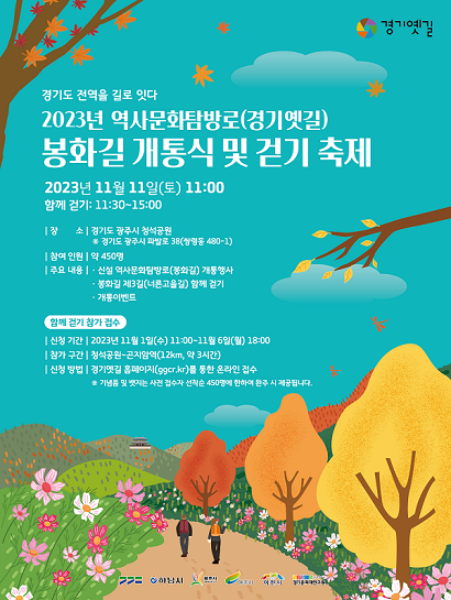 31일 경기도에 따르면 도와 경기문화재단 경기옛길센터는 오는 11일 경기광주시 청석공원에서 '경기옛길 봉화길' 개통식을 개최할 예정이다.