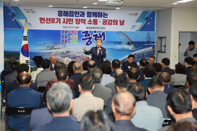 31일 포항시에 따르면 이강덕 시장은 이날 흥해읍행정복지센터에서 시도의원, 지역단체장, 지역주민 등 100여 명이 참석한 가운데 민선 8기 시민 소통·공감의 날’ 행사를 개최했다.