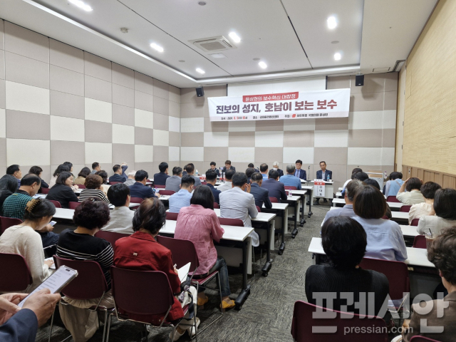 윤상현 국민의힘 의원이 광주에서 열린 토론회에서 보수 정당의 현재 상황과 미래 방향을 논의했다.