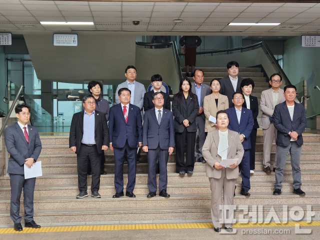 16일 유준숙 의원 등 시의회 국힘 소속 의원 10여 명은 시청 본관에서 기자회견을 열고 ‘수원시의 미래와 시민의 신뢰를 위해 현근택 제2부시장 취임에 반대한다"고 밝혔다.