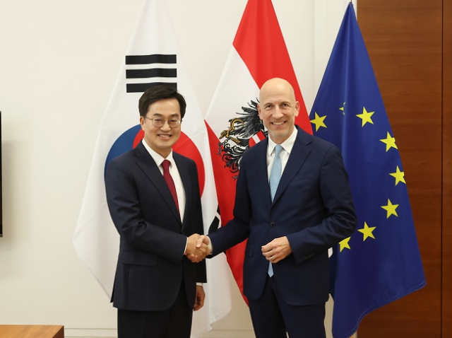 28일 경기도에 따르면 김동연 지사는 이날(현지시간) 유럽 순방 첫 일정으로 비엔나에서 마틴 코허(Martin Kocher) 오스트리아 노동경제부 장관을 만나 환담을 나눴다.