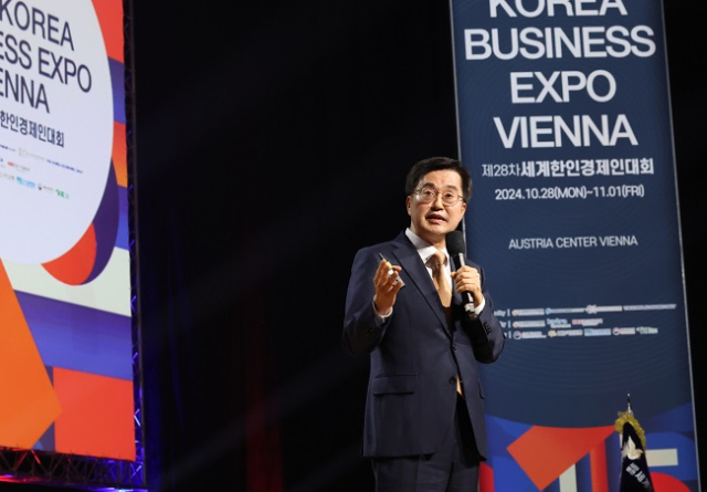 김동연 경기도지사가 28일(현지시간) 오스트리아 비엔나센터에서 열린 '세계한인경제인대회' 기조강연에서 '사람중심경제(휴머노믹스)'를 역설했다.