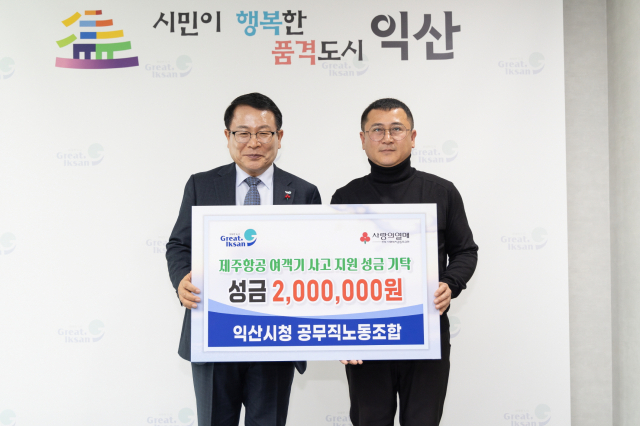 전북특별자치도 익산시공무직노동조합(위원장 김민철)은 10일 제주항공 여객기 참사 피해 지원을 위해 성금 200만 원을 기탁했다.