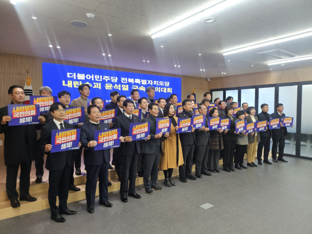 더불어민주당 전북자치도당(위원장 이원택)은 13일 오전 도당 컨퍼런스룸에서 '내란수괴 윤석열 구속 결의대회'를 갖고 윤석열의 법적 책임을 촉구하며 구속을 강력하게 촉구했다.
