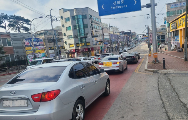이곳에서 5분 가량 한쪽 방향 이용 차량을 확인한 결과 200여 대에 달했다. 정차 신호등이 켜지면 통상 20~30대 가량이 내리막길에 즐비하게 늘어설 정도로 차량 이용이 많았다.