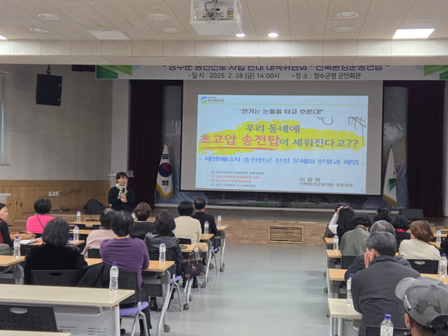장수군 송전선로 사업 반대 대책위원회(위원장 김남수)는 28일 장수군청 군민회관에서 전북환경운동연합 이정현 공동대표로부터 장수군 신규 송전선로 사업 반대 특강을 개최하고 해당 지역과 시민단체 등과 연대해 법적·정치적 대응 투쟁 등 본격적인 활동을 예고했다.