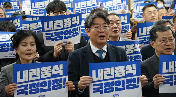 이춘석 의원은 또 이날 법원이 윤석열 대통령 구속 취소를 결정한 것을 언급하며 "대한민국의 앞날이 어디로 갈지 한 치 앞도 내다볼 수 없는 정국으로 다시 휘몰아치지 않을까 하는 불길한 생각이 든다"라고 주장했다.