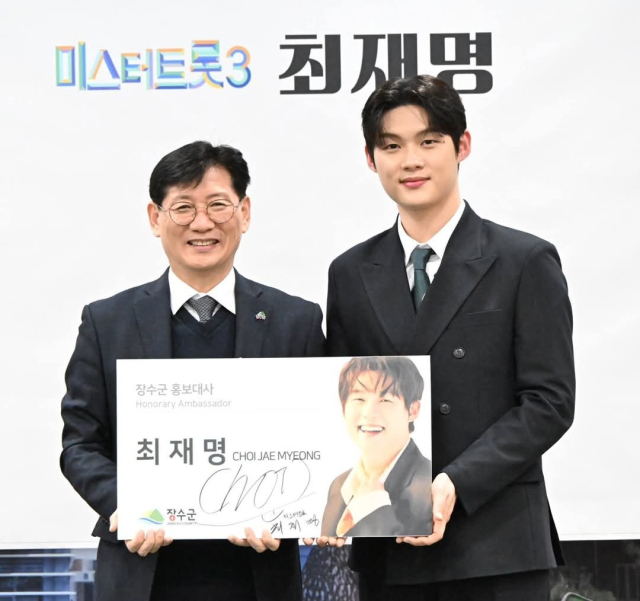 앞서 장수군은 지난 6일 TV조선 '미스터트롯3'에서 활약하며 대중적 인지도와 호감도를 얻고 있는 장수군 출신의 방송인 최재명을 홍보대사로 위촉했다고 밝혔다.