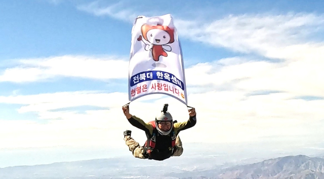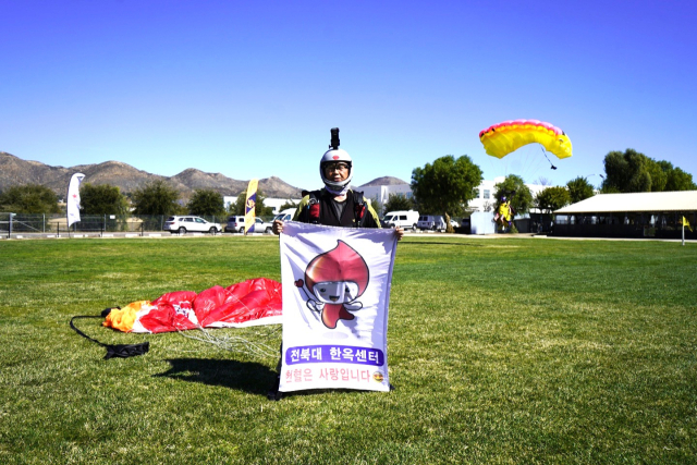 주인공은 전북자치도 남원시 동문로에 주소를 둔 박용수씨(64)이다. 그는 지난 2월21일 미국 캘리포니아주 레이크사이드 엘시노아 스카이다이빙 드롭존에서 '생명을 살리는 사람, 바로 우리'라는 문구가 적힌 현수막을 들고 몸을 허공에 던졌다.