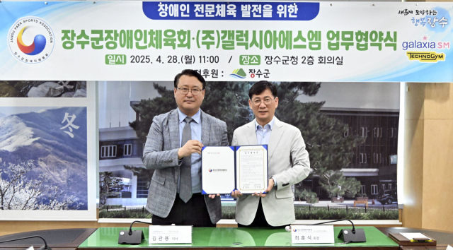이날 협약식에는 장수군장애인체육회 회장을 맡고 있는 최훈식 군수와 (주)갤럭시아SM 김관용 이사 등이 참석해 장애인 전문체육 활성화를 위한 상호 협력 의지를 다졌다.