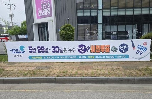 익산시는 또 주요 시가지에 사전투표와 본투표 참여를 독려하는 현수막을 대거 게첨했는가 하면 익산시청과 익산역 주변, 행정복지센터, 1000세대 이상 대규모 아파트단지 등에 70여개의 현수막을 걸어 시민들의 주권참여의식을 이끌어냈다.