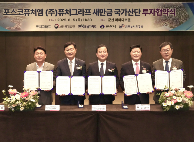 새만금개발청(청장 김경안)과 전북자치도·군산시·한국농어촌공사는 5일 ㈜포스코퓨처엠 신설 자회사인 ㈜퓨처그라프와 '이차전지 음극재 핵심소재 제조시설 건립을 위한 투자협약(MOU)'을 체결했다.