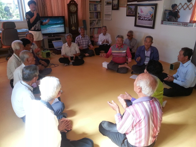 경로당에 빙 둘러 앉아 박수를 치며 프로그램을 즐기는 어르신들이 표정이 모두 밝다. 이 경로당의 한 관계자는 이렇게 말했다.