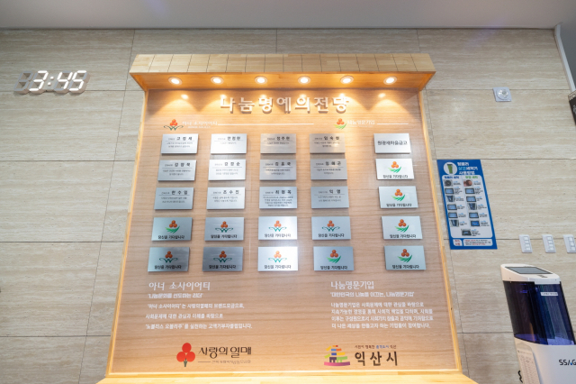 나눔 명예의 전당은 지역사회 발전을 위해 나눔을 실천한 개인·기업 기부자를 기리는 공간으로 현재 익산시에는 아너소사이어티 회원 12명과 나눔명문기업 1곳이 이름을 새겼다.