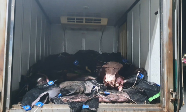 현장에서는 어창에 보관 중이던 밍크고래 165자루 분량(약 1.8톤, 2마리 상당)의 고래 고기가 압수됐다.