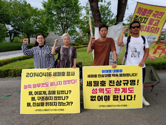문재인 정부 때 청와대 앞에서 피켓을 들었던 '성역없는 한계없는 세월호 진상규명을 촉구하는 유가족과 시민들' 은 오늘도 어김없이 용산집무실 앞에서 피켓을 든다.