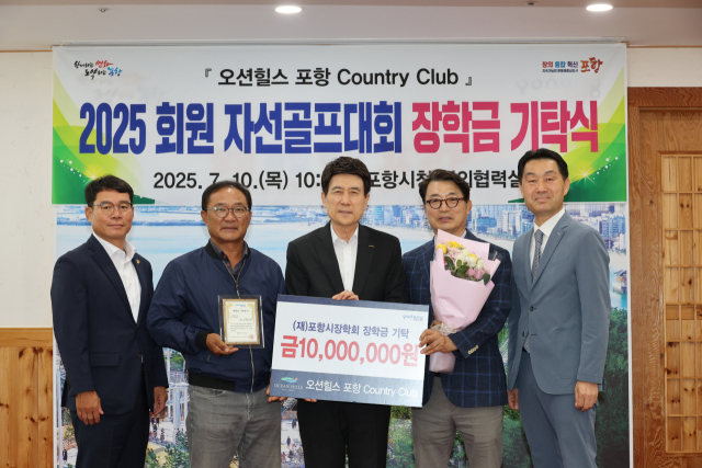 오션힐스 포항CC(대표 이승도)와 회원운영위원회(위원장 이태용)는 10일 지역 인재 육성을 위한 장학금 1천만원을 포항시장학회에 기탁했다.