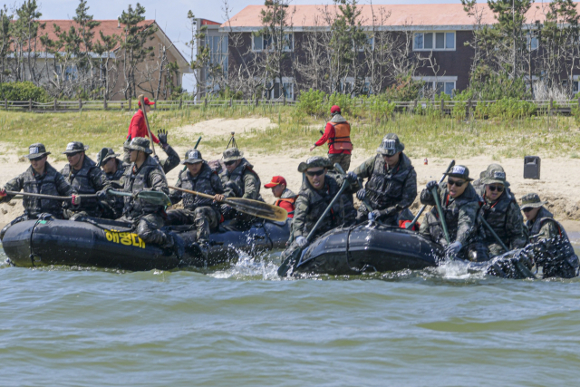 특히 장병들은 팀 단위로 140kg에 달하는 고무보트를 운용하며 단결력과 전우애를 고취시켰다.