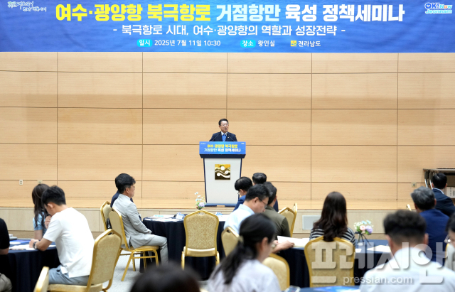 전라남도는 11일 도청 왕인실에서 '북극항로 시대, 여수·광양항의 역할과 성장전략'을 주제로 정책 세미나를 열고 여수·광양항의 새로운 가능성을 모색했다.
