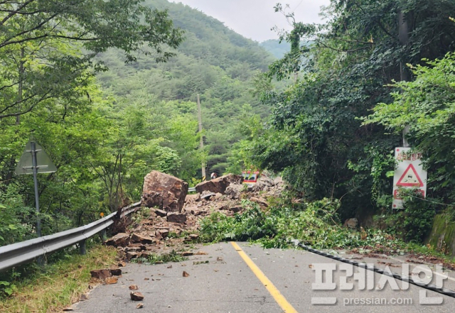 16일 오전 6시 40분께 경북 포항시 북구 죽장면 가사리 인근 69번 지방도에서 산사태가 발생해 도로가 한때 전면 통제됐다.