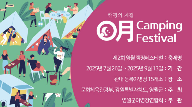 강원 영월군과 영월군야영장연합회는 26일부터 9월 13일까지 관내 캠핑장 15곳에서 ‘제2회 영월 캠핑 페스티벌(0月 Camping Festival)’을 개최한다.