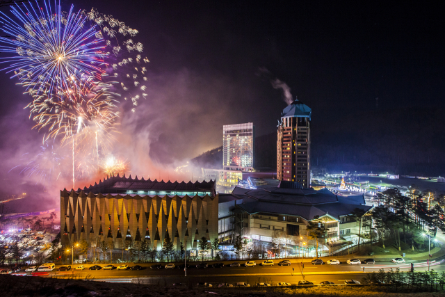 해가 지면 하이원의 자랑인 ‘하이원 레이저 불꽃쇼’가 그랜드호텔 잔디광장에서 화려하게 펼쳐진다.
