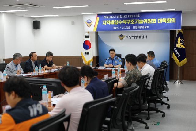 경북 포항해양경찰서는 29일 해경 회의실에서 지역 해양안전 유관기관과 함께 ‘지역해양수색구조기술위원회’ 회의를 열고, 태풍 내습 시 해양사고 예방과 신속한 구조 대응 체계 강화 방안을 논의했다.