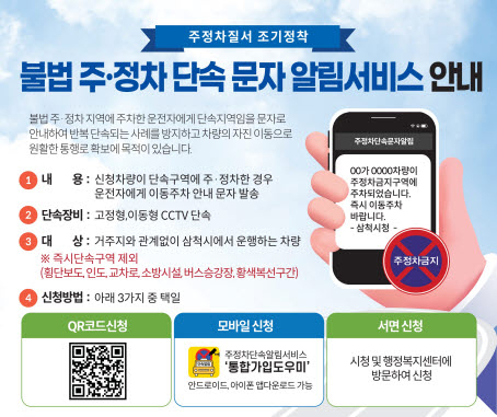 시 관계자는 “이번 서비스는 불법 주·정차 금지구역 진입 차량에 대해 실시간으로 문자를 발송하여 교통 흐름을 원활하게 하고, 올바른 주차 문화를 조성하기 위한 것”이라며 “운전자 여러분의 적극적인 참여와 협조를 부탁드린다”고 말했다.