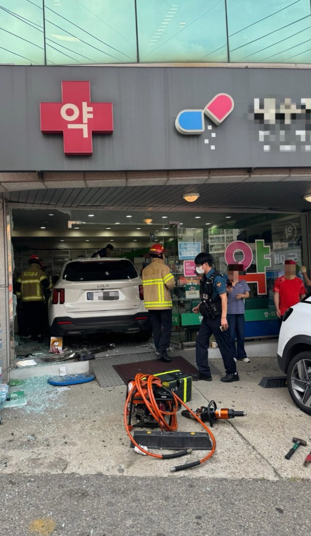 8일 오후 3시 30분께 경기 화성시 봉담읍 와우리에서 60대 여성 A씨가 모는 쏘렌토 차량이 상가건물 1층 약국으로 돌진하는 사고가 났다.
