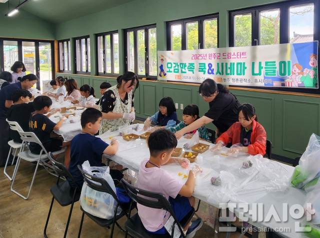 완주군은 13일 ‘쿡&시네마’ 문화체험 프로그램을 열고, 관내 아동 30명과 함께 떡 만들기·아이스크림 체험, 영화 관람을 진행했다.