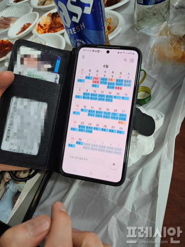 일만 있다면 한 달에 30일을 일했다는 A씨가 들고 다니던 휴대전화 달력 앱엔 '○○리 공사', '아스콘 작업' 같은 일정으로 빼곡했다.