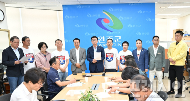 완주군의회는 14일 완주군청 브리핑실에서 기자간담회를 열고 “전주시와 전북특별자치도, 찬성단체의 홍보에 대응해 주민들에게 정확한 정보를 전달하고자 의원 11명이 직접 현장을 찾았다”고 설명했다. 이번 주민설명회는 7월 21일부터 8월 12일까지 진행됐다.