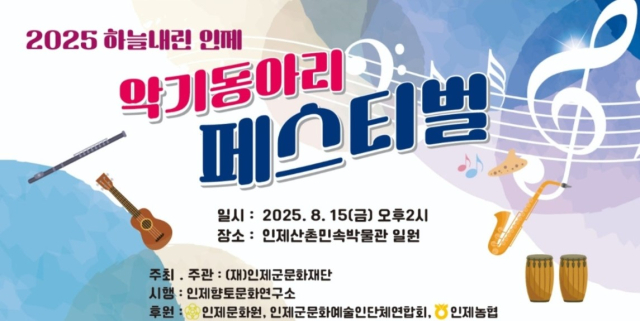 15일 금요일 오후 2시, 인제산촌민속박물관 일원에서는 악기동아리 페스티벌이 열린다. 올해 처음 개최되는 이번 행사는 인제향토문화연구소에서 준비했으며 지역 내 다양한 악기 동아리가 참여해 각기 다른 매력을 선보인다.
