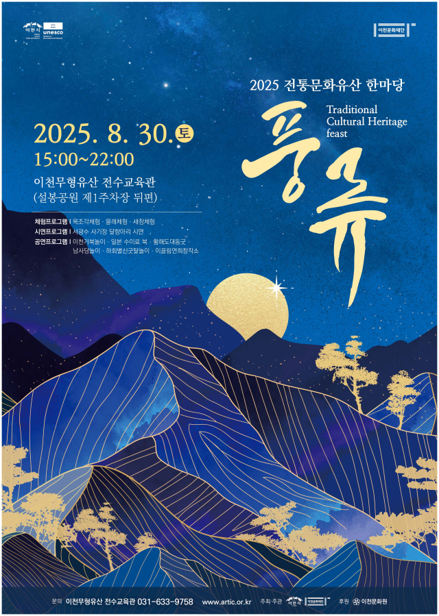 경기 이천문화재단(이사장 김경희)이 오는 30일 오후 3시부터 10시까지 이천무형유산 전수교육관에서 '2025 전통문화유산 한마당 풍류'를 개최한다.