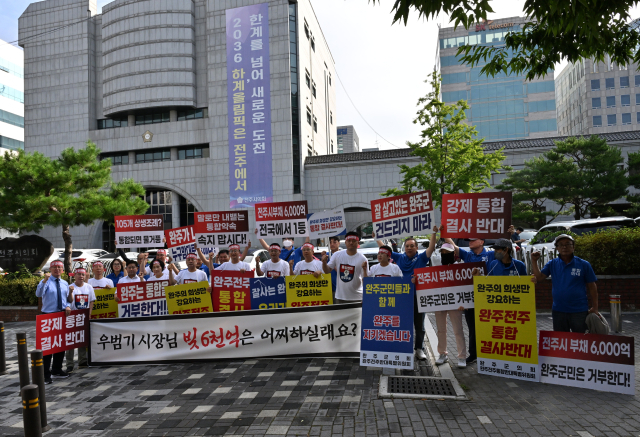전북 완주군의회가 전주와의 행정통합 논의에 대해 강력히 반대하며 거리로 나섰다. 군의회는 주민 의견 수렴 없는 통합 추진은 군민 희생을 강요하는 것이라며 중단을 촉구했다.