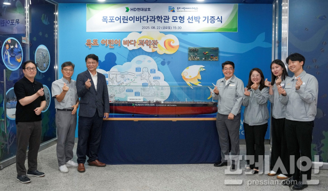 HD현대삼호(대표이사 김재을 사장)가 지역사회 해양 교육과 문화 확산을 위해 목포어린이바다과학관에 대형 모형 선박을 기증했다.