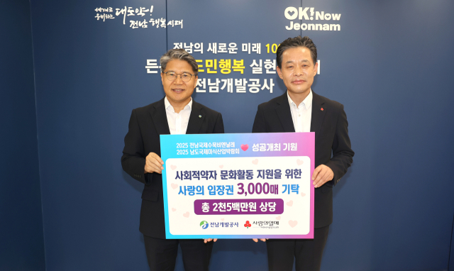 전남개발공사(사장 장충모)는 지역 소외 계층의 문화 향유의 기회를 높이고자 2,500만원 상당 지역 문화행사 입장권 3,l000매를 전남사회복지공동모금회에 기탁했다고 27일 밝혔다.