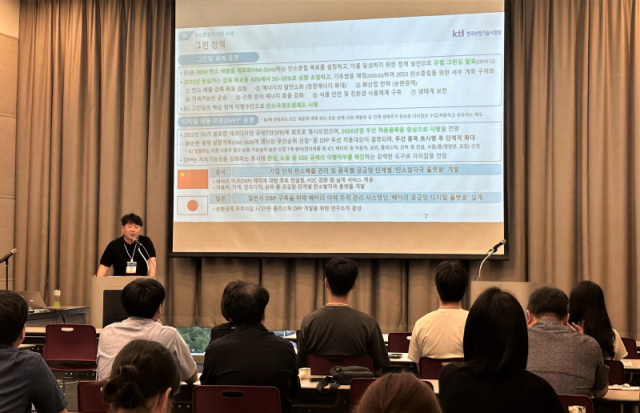 28일 에너지대전에서 개최한 세미나에는 약 50여 명의 업계 관계자들이 참석했다. KTL은 세미나에서 ▲스마트에너지플랫폼 TOC+의 구축과 활용 ▲공장 에너지 관리 시스템(FEMS+) 기반 공장 에너지·온실가스 실시간 모니터링 ▲제품탄소발자국 서비스형 소프트웨어(SaaS)를 통한 제품 단위 탄소발자국 산정과 국제 기준 대응 전략 등을 주제로 다뤘다.