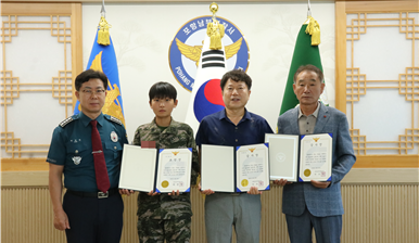 경북 포항남부경찰서(서장 박찬영)는 중요 범인 검거와 실종자 수색에 기여한 군인과 시민에게 표창장 및 감사장을 수여했다고 1일 밝혔다.