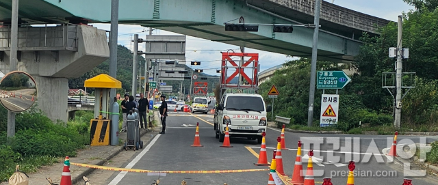 사고 지점에서는 현재도 소량의 가스가 누출되고 있어 2차로 양방향을 전면 통제한 뒤 복구 작업이 진행 중이다.